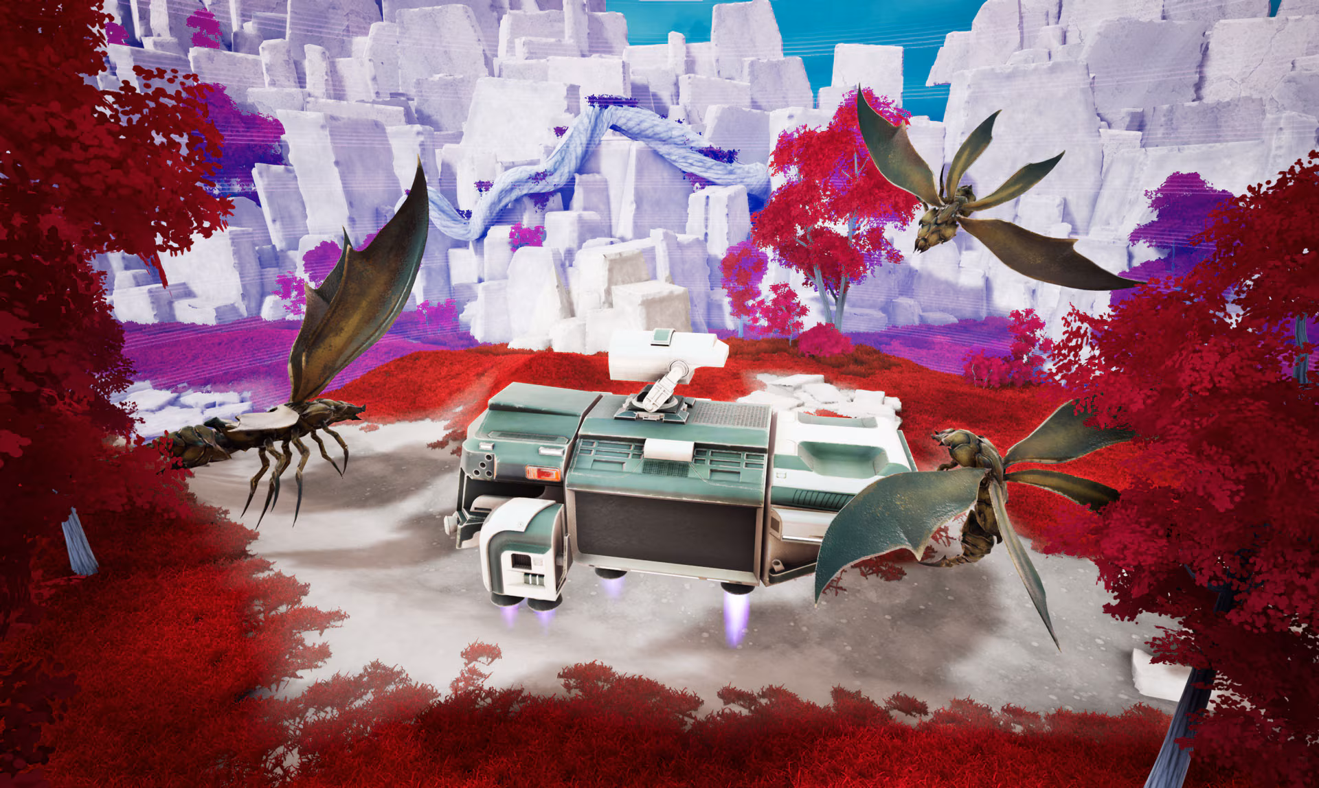 - Eine gnadenlose Alien‑Schwarm‑Spezies hat euch ins Visier genommen und greift in Wellen an.